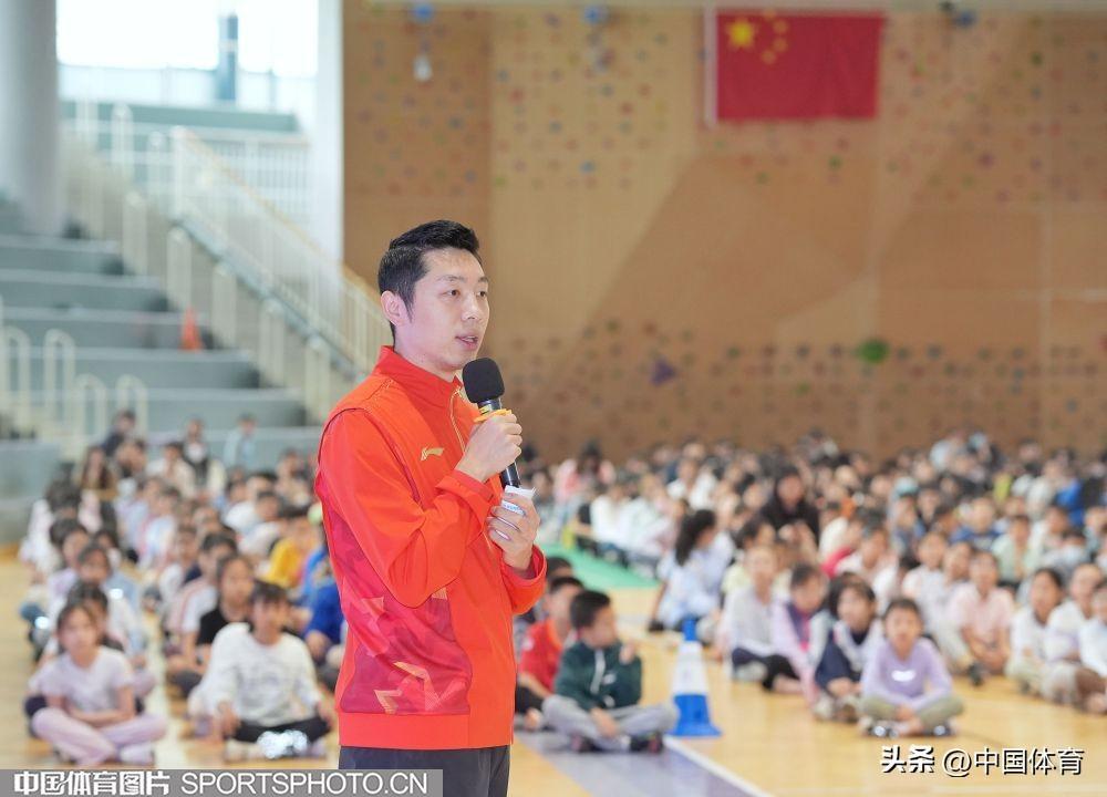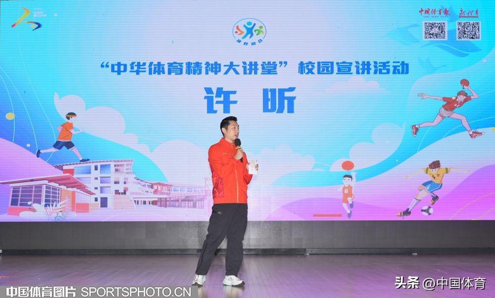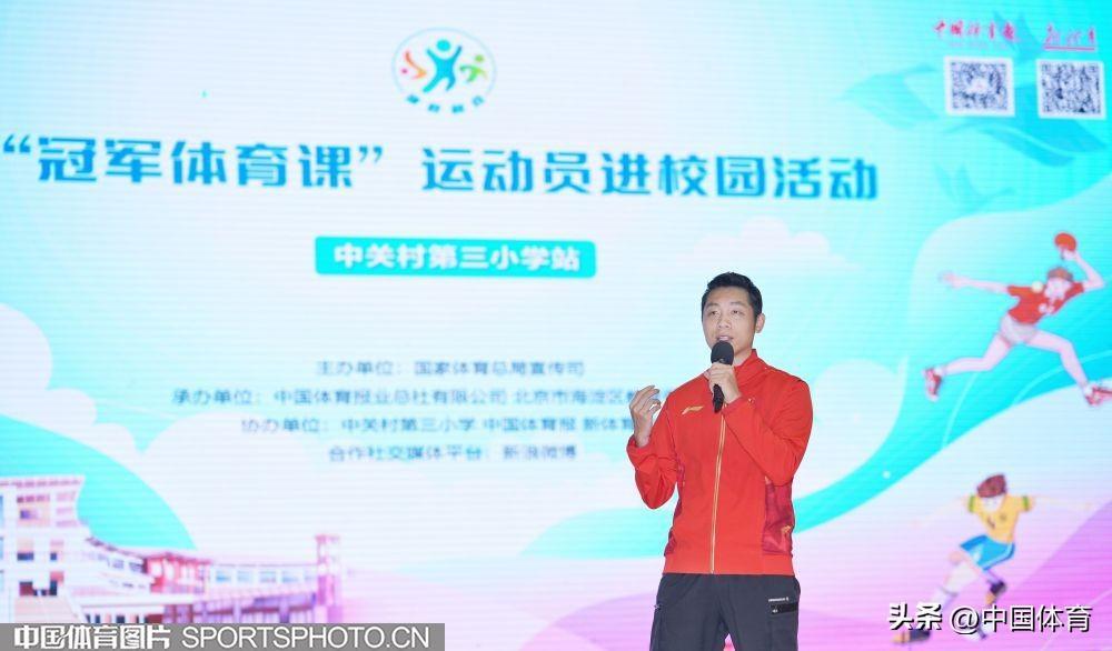 中國體育訊 4月26日,乒乓球奧運冠軍許昕來到北京市海淀區中關村第三小學,參加“中華體育精神大講堂”校園宣講及“冠軍體育課”運動員進校園活動。許昕在活動中與該校師生分享了自己的運動生涯,並和學校的乒乓球小運動員們進行了交流。圖爲活動場景。(中國體育圖片 魏徵 攝)