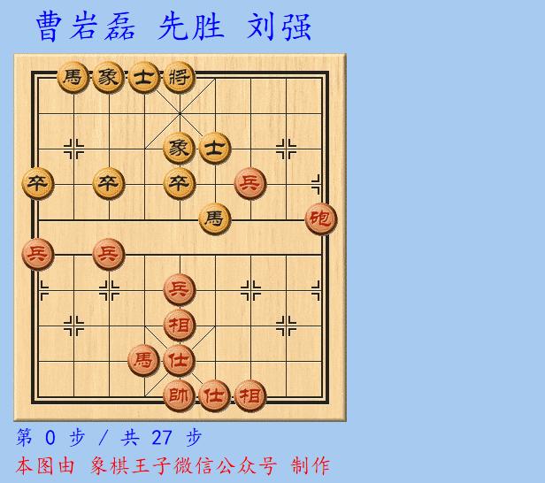 棄子大師先手與東道主陝西籍大師劉強一仗,曹巖磊至馬炮殘棋,以馬炮四兵進攻對方雙馬3卒的城池。