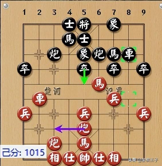 紅方小兵撞下,破掉黑士,而後縱馬奔出,炮串黑雙馬,黑兩馬被將帥對面所吊,必丟一子,曹巖磊奪子致勝。