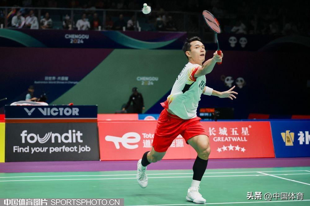 中國體育訊 4月29日,2024年湯尤杯在成都高新體育中心體育館進入第三個比賽日。當日進行的湯杯小組賽中,印尼男隊以5比0擊敗英格蘭隊,以兩戰兩勝的戰績提前小組出線。(中國體育圖片 鹿麟 攝)