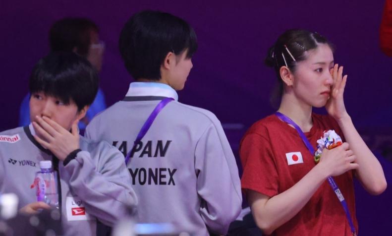 這場比賽的氛圍感極其窒息,國羽組合拿下最後一分後,也激動地流眼淚,當然,彼時的日本隊也是情緒低落,志田千陽努力控制眼淚,但還是忍不住哭了出來。