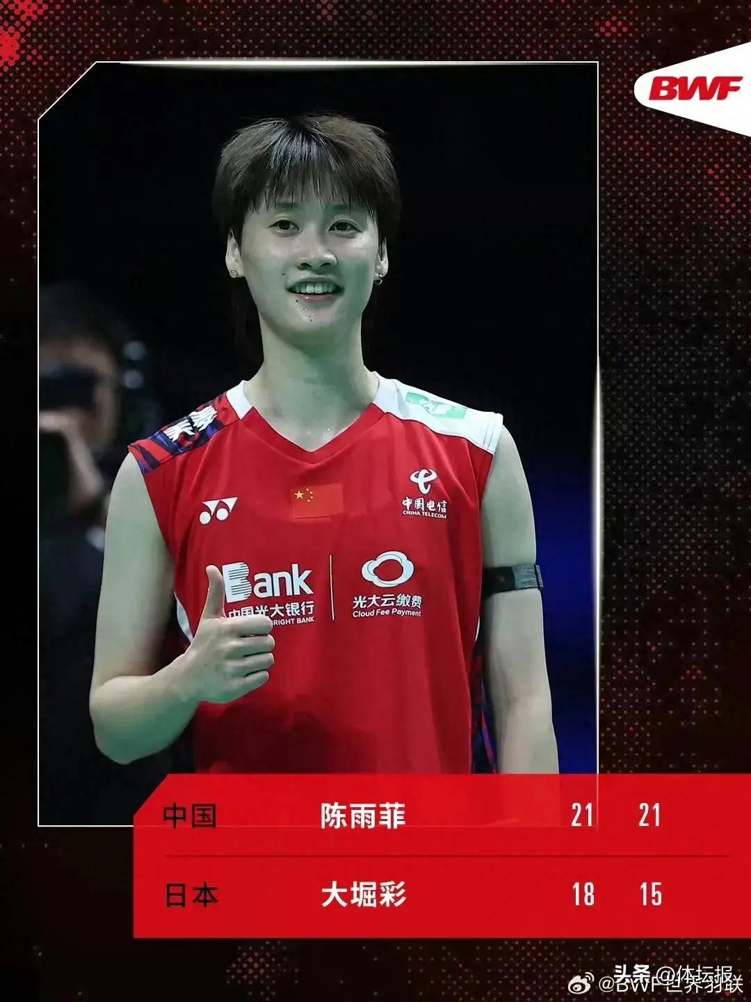 女雙比賽,陳清晨/賈一凡頂住壓力,2:1擊敗松山奈未/志田千陽。值得一提的是,決勝局她們在12-18落後情況下挽救2個場點完成驚天逆轉。