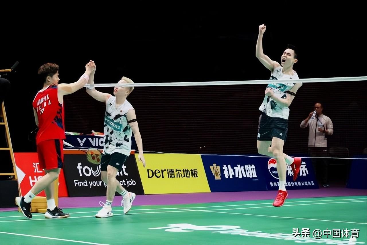 中國體育訊 5月4日,2024年湯尤杯羽毛球賽在成都高新體育中心體育館展開第八個比賽日的爭奪。在晚間結束的湯杯半決賽中,中國隊以3比1戰勝馬來西亞隊晉級決賽。具體戰績爲:石宇奇2比0(21比19、21比5)戰勝李梓嘉;梁偉鏗/王昶1比2(21比15、12比21、17比21)不敵謝定峯/蘇偉譯;李詩灃2比0(21比17、21比10)戰勝梁峻豪; 何濟霆/任翔宇2比1(18比21、21比19、21比12)戰勝吳世飛/伊祖丁。(中國體育圖片 鹿麟 攝)