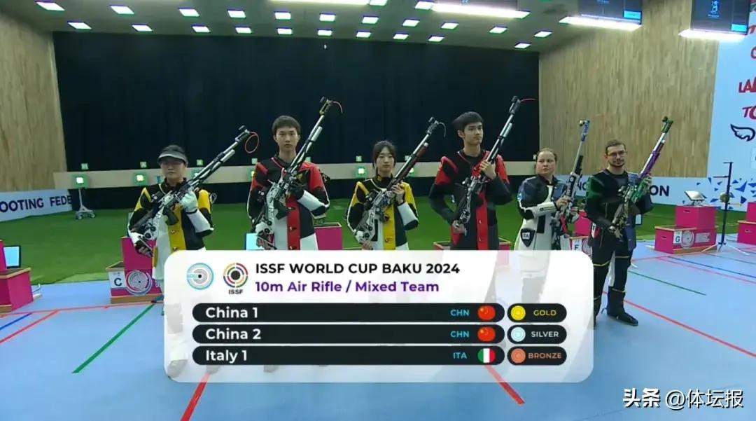 2024年國際射聯世界盃阿塞拜疆巴庫站的比賽正在進行,在已經結束的10米氣步槍混團比賽中,兩對中國組合黃雨婷/盛李豪和韓佳予/杜林澍包攬冠亞軍。兩對組合中,兩位女選手均來自浙江。