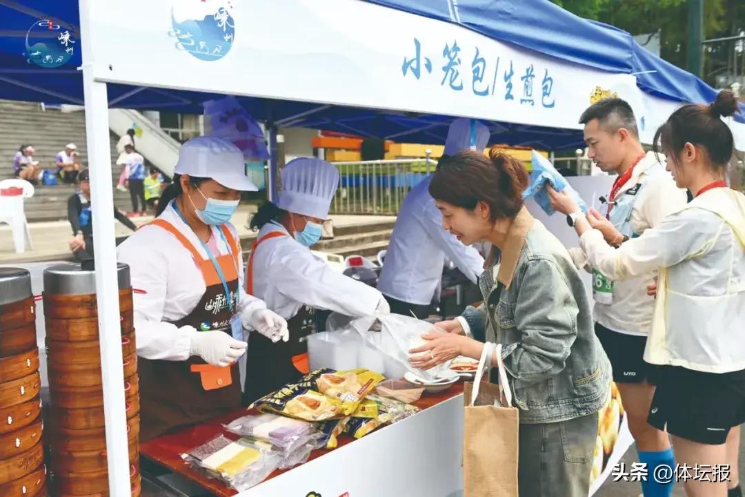 選手們在衝線之後,不僅拿到了屬於他們的“勇氣獎牌”,還能伴隨着美妙的越劇,品嚐一番嵊州當地美食,豆腐小籠包的滑嫩、豬頭肉春餅的香脆、炒年糕的軟糯……讓選手們流連忘返,有的甚至還買了多份打包回家分享給家人。