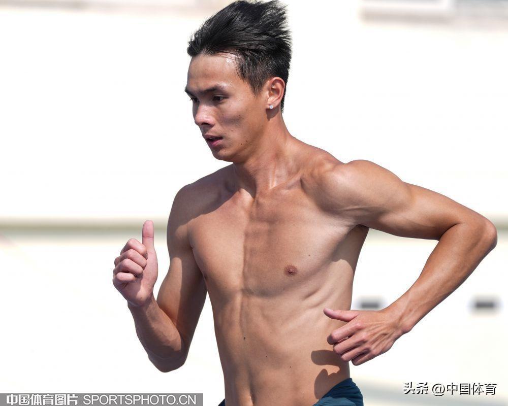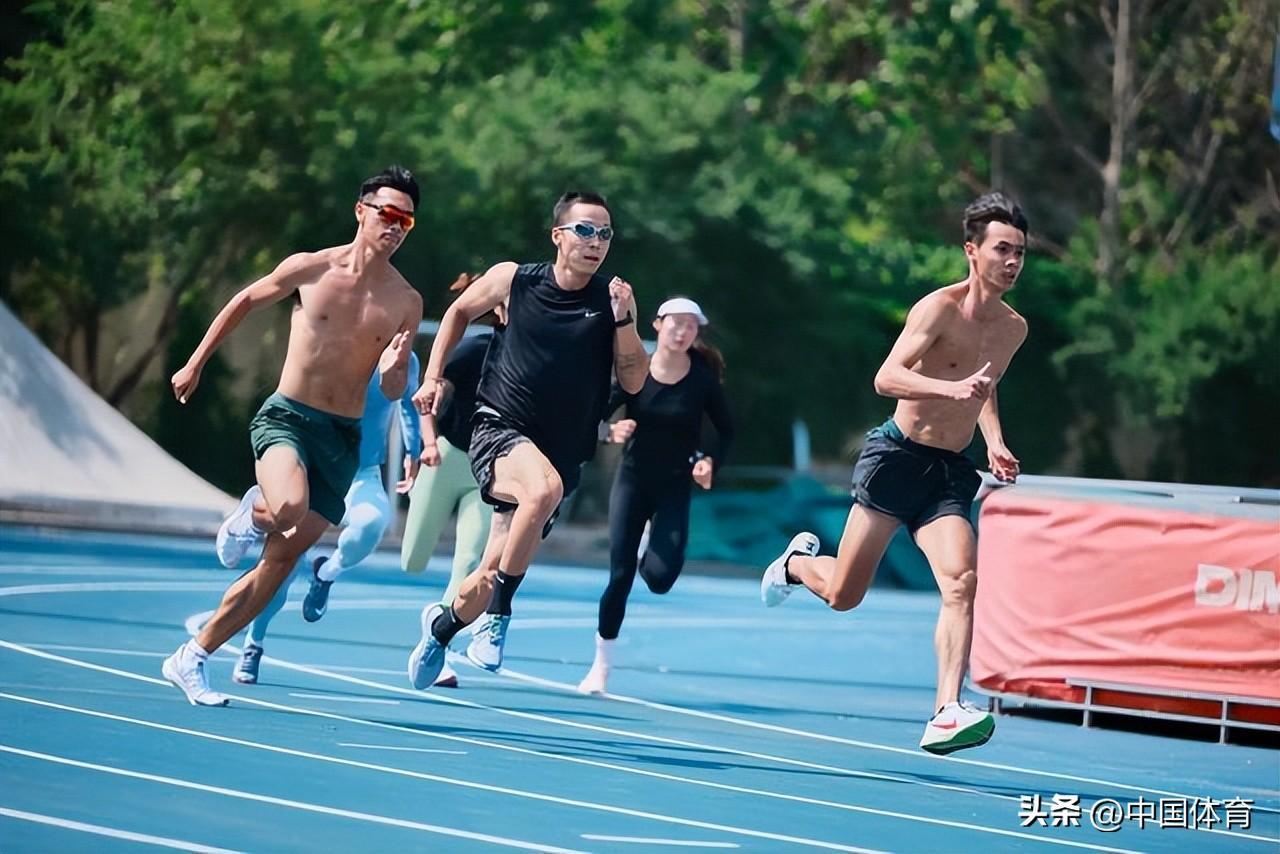 左起:中國男子短跑選手鄧智艦、吳智強、嚴海濱在訓練中