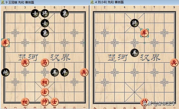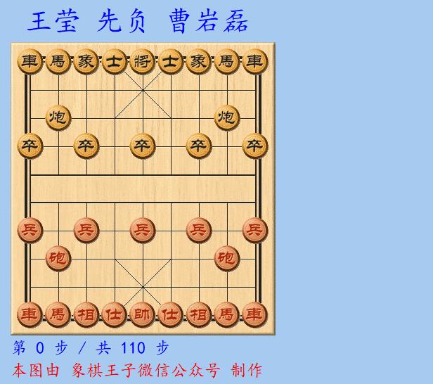 曹巖磊最擅此陣,化解紅方攻勢,在車馬炮卒光將對車馬單缺相決勝時,110手借殺功之威,再奪一馬勝出。