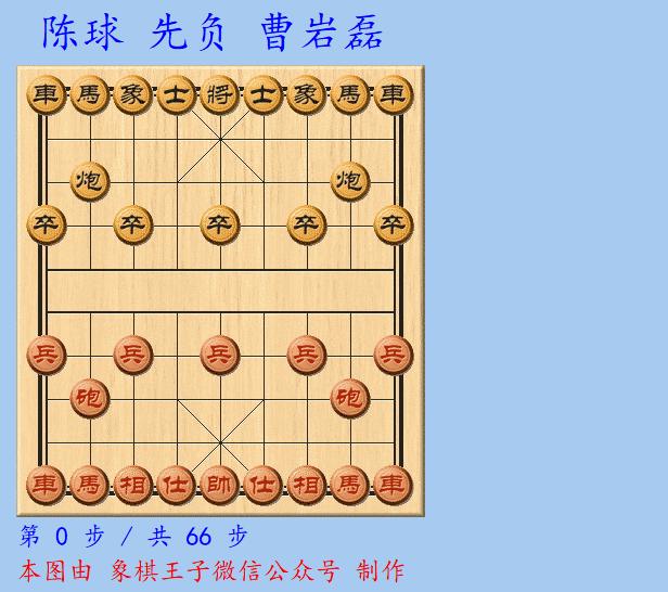 曹巖磊執黑以雷霆之力,在右炮過河,揮打三兵後,全速瞄準紅右側做文章,紅側翼受制,黑子力揮出,66手馬炮殘棋以抽子之勢,強勁拿下開門紅。