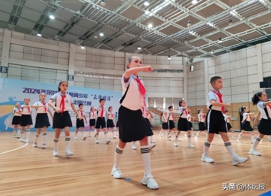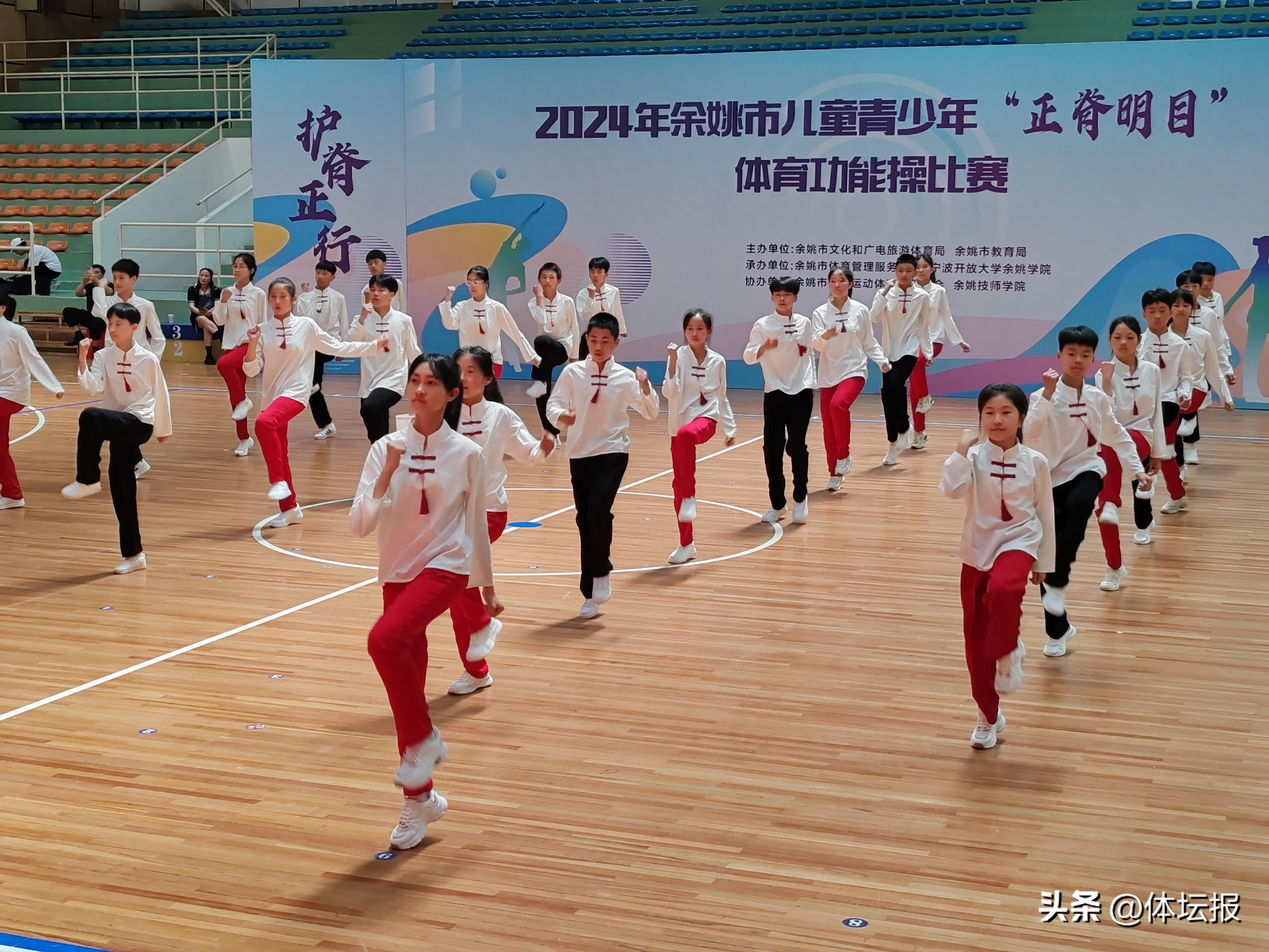 “我是陽光,你是陽光,讓花兒開放,讓嘴角上揚……”5月18日,在餘姚技師學院體育館內響起歡快的音樂聲,2024年餘姚市兒童青少年“正脊明目”體育功能操比賽在此舉行,來自蘭江小學、陽明小學、知行小學等10所學校的300位運動員參與。