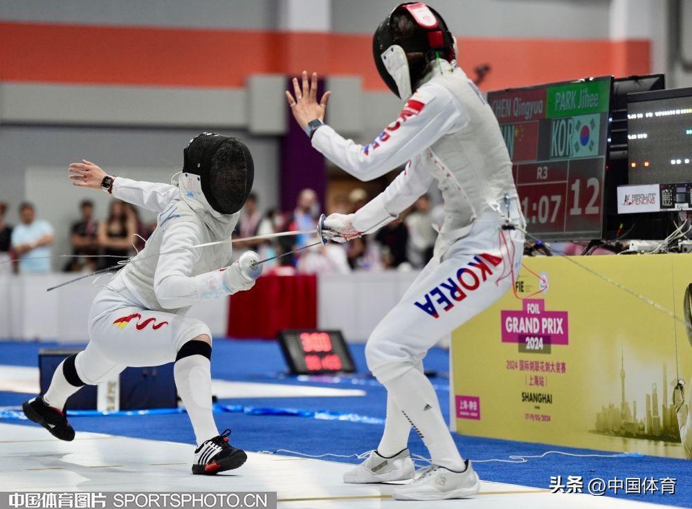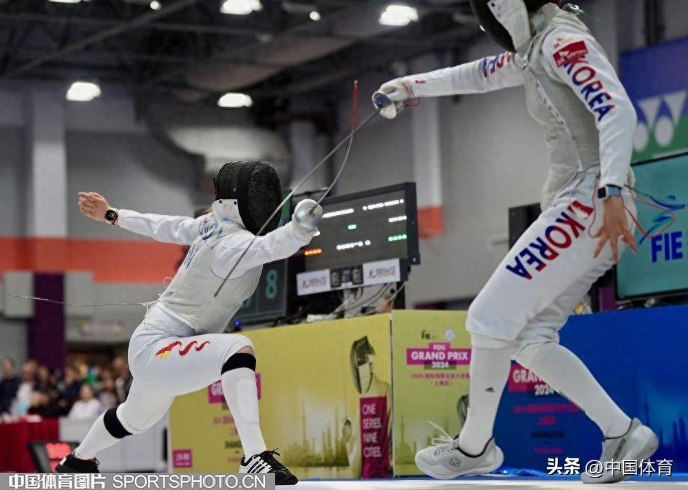 中國體育訊 5月19日,2024國際劍聯花劍大獎賽在上海靜安體育館繼續進行。已獲得巴黎奧運會參賽資格的中國隊以賽代練,劍指巴黎。(中國體育圖片 倪敏哲 攝)