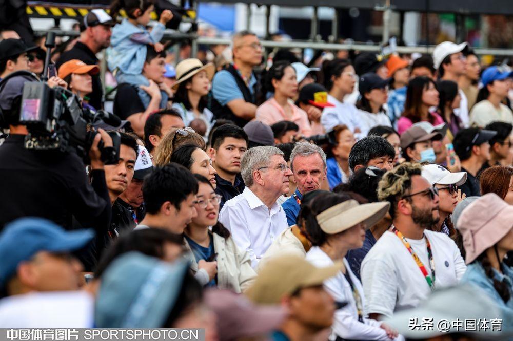 國際奧委會主席巴赫與現場觀衆一起觀看攀巖女子全能決賽