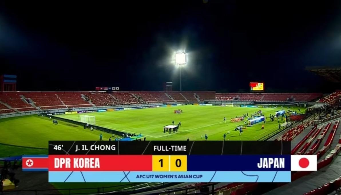不過在易邊之後,朝鮮隊第46分鐘終於打破僵局,進球者正是多次錯失良機的張全一,日本女足後場失誤,她在小禁區弧頂位置抓住機會,面對空門一蹴而就,1比0!