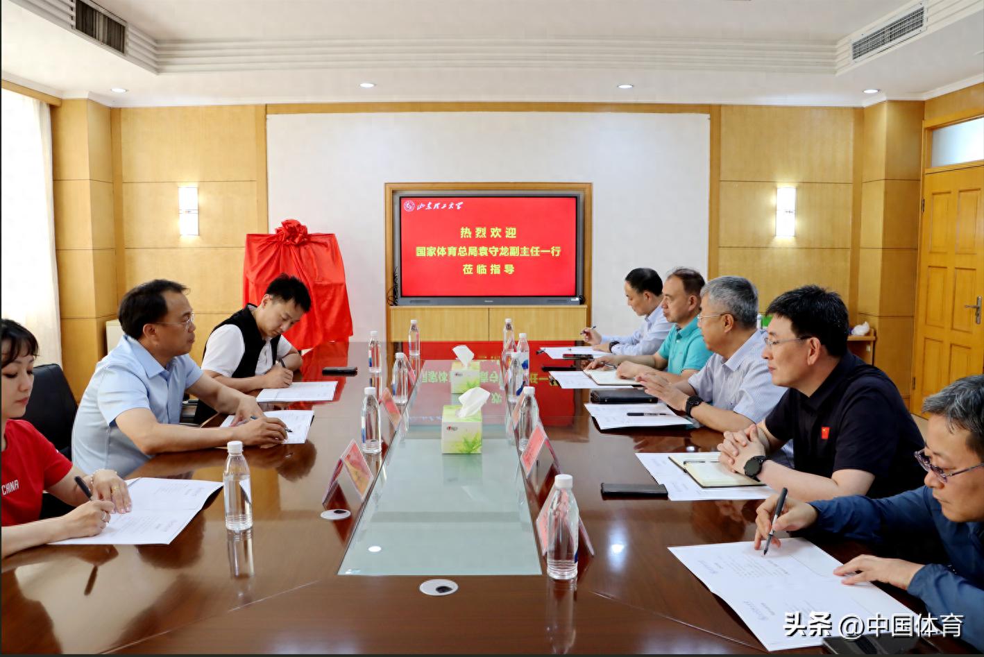 袁守龍介紹了體操運動管理中心的基本情況,對學校近年來取得成績表示讚賞。