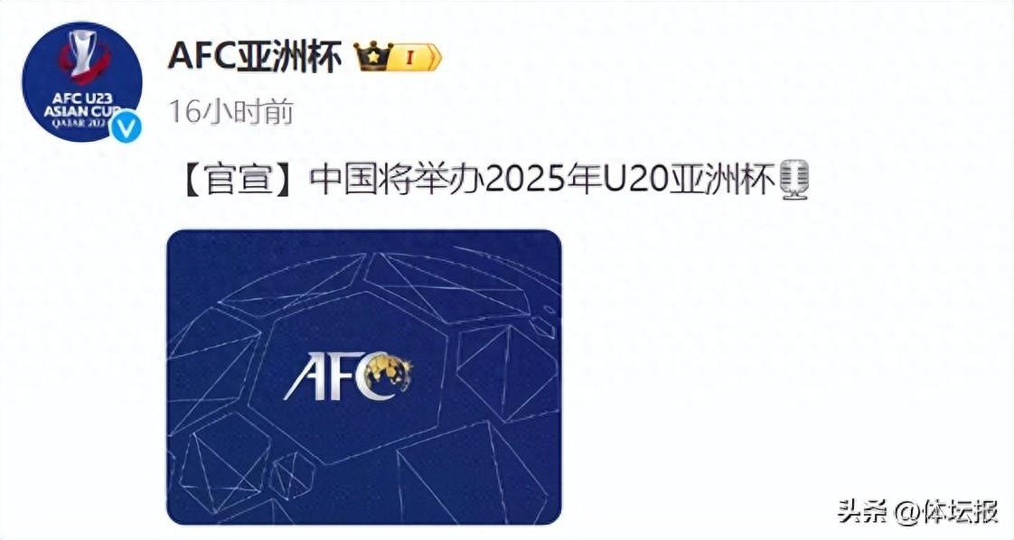 5月24日,亞足聯發佈公告表示,中國將舉辦2025年U20男足亞洲盃。