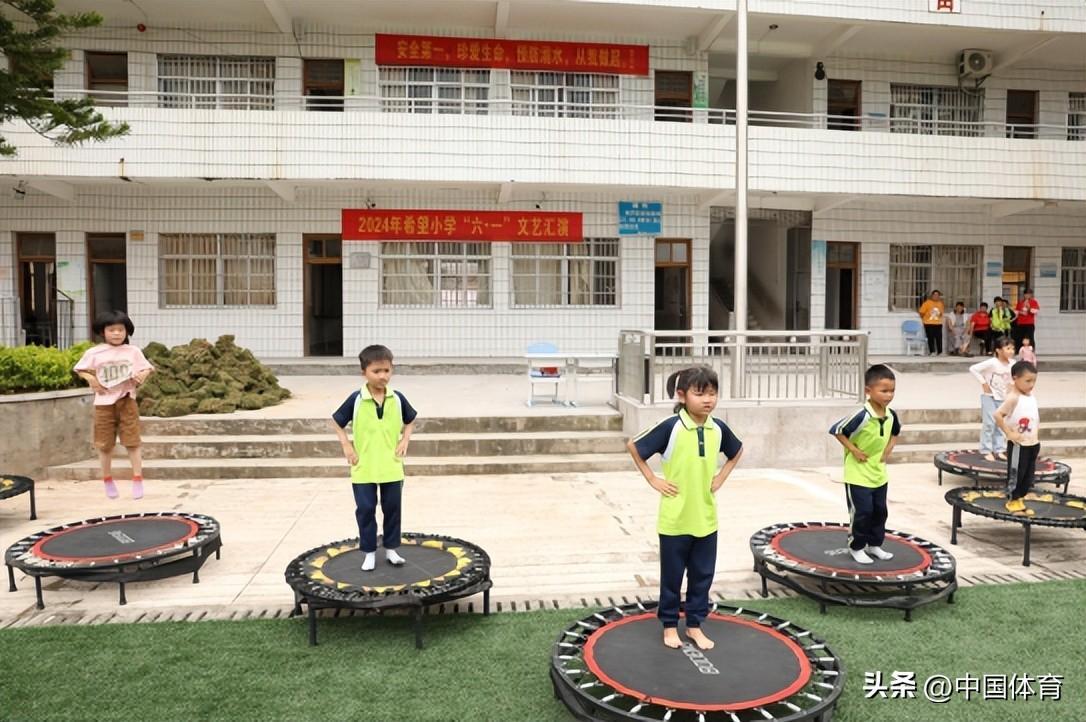中國體育訊 中國蹦牀與技巧協會消息,2024年六一兒童節前夕,廣東省梅州市五華縣橫陂鎮的廣晟體育小學、橫陂小學、壩頭希望小學等多所學校舉辦了形式多樣的慶祝匯演。其中,“蹦牀操”表演成爲最受歡迎的節目之一,爲兒童節增添了無盡的歡樂與活力。