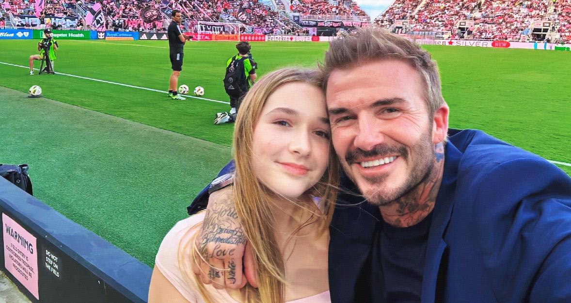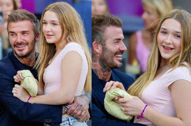 近日,貝克漢姆與女兒小七現身邁阿密國際隊主場,已經13歲的哈珀已經長成大姑娘了,也是整個家裏長得最像爸爸的孩子,穿着淺粉色緊身露臍背心, 搭配寬鬆牛仔褲,一頭金髮垂腰,活力四射,非常有少女氣息。