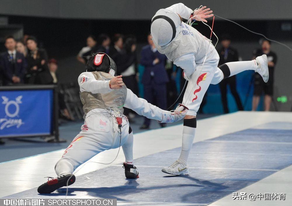 中國體育訊 6月3日,2024年全國擊劍冠軍賽分站賽(第二站)在廣東省清遠市體育館開賽。中國擊劍隊巴黎奧運會花劍項目未定席位選拔賽在首日上演,通過激烈角逐,江蘇隊王雨婷和福建隊焦恩祺均戰勝江蘇選手石鑰,入選中國女子花劍隊奧運陣容,出征巴黎奧運會。在男子花劍的角逐中,上海隊選手吳斌戰勝小將曾昭然,進入巴黎奧運會中國男子花劍隊大名單。(中國體育圖片 倪敏哲 攝影報道)