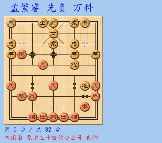 終局黑退炮抽過河兵,紅墊車成兌,則黑雙炮馬雙卒戰雙炮三兵仕相全,黑必勝,孟繁睿無力再鬥,認負,血拼未果,萬科勝出。