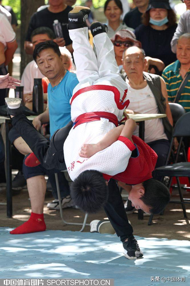 中國體育訊 在北京地壇公園內,有一個致力於傳承和發揚中國式摔跤的重要場所,這便是中國傳統跤地壇交流中心。所謂交流中心,其實也只是公園中古樹掩映下的一片空地而已。但是這裏每週都會組織摔跤活動,包括訓練、友誼比賽和切磋跤技等。這些活動吸引了來自北京以及周邊地區的摔跤愛好者,甚至有外地特意來交流的愛好者。自從2000年成立以來,交流中心也已經有了24年的歷史。圖爲2024年6月地壇交流中心交流場景。(中國體育圖片 安靈均 攝影報道)