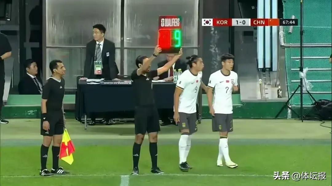 第67分鐘,國足也連換兩人,張玉寧和上一場停賽的武磊先後登場。領先的韓國隊並沒有停下進攻的步伐,第76分鐘,黃渽沅右側突破後分球,禁區內的朱玟奎轉身打門被王大雷撲出。此後,方昊、黃政宇和李磊也披掛上陣。韓國隊則連續利用角球製造殺機,第86分鐘,權敬原後點無人盯防的衝頂被王大雷沒收。方昊上場後多次在右路獲得拿球機會,但與隊友並未形成太多有效配合。傷停補時5分鐘內,國足未能創造反擊機會,只能吞下失利的苦果。