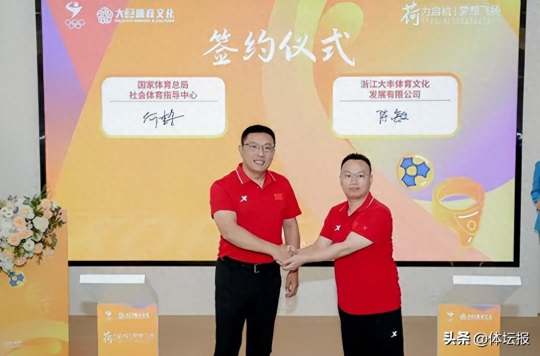 6月12日,荷力啓杭 夢想飛揚·國家體育總局社會體育指導中心荷球項目戰略合作簽約儀式暨新聞發佈會在浙江杭州·大豐科創中心舉行。發佈會上,國家體育總局社會體育指導中心全民健身事業部副主任何懿與浙江大豐體育文化發展有限公司荷球事業部總監陳敏簽署合作協議。未來,大豐體育將作爲國家體育總局社體中心荷球項目的戰略合作伙伴單位,爲中國荷球發展注入強勁動力。
