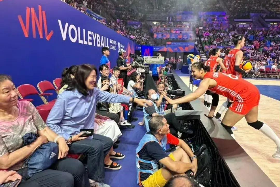 首局比賽,蔡斌指導繼續讓朱婷首發,後者拿到5分,幫助中國女排先下一城,當然這一局德國隊也打得非常頑強,比分咬得還是比較緊,關鍵分上袁心玥連續一發製造威脅,奠定了優勢,這局她獨攬7分,最終中國女排25比19拿下,值得一提的是,郎平也來到了現場,坐在第一排觀衆席觀戰,並且與隊員們擊掌鼓勵。