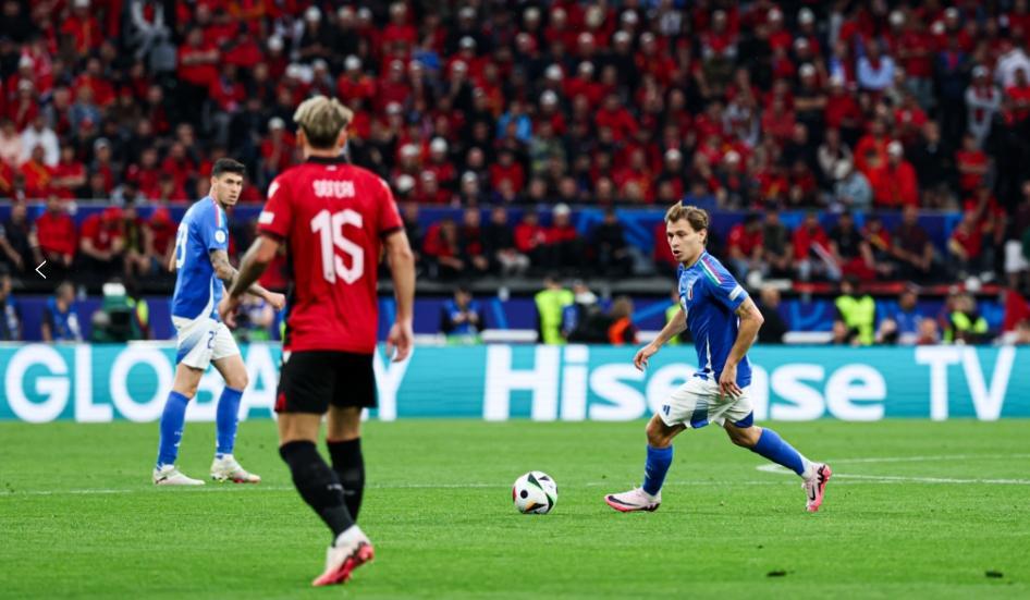而意大利與阿爾巴尼亞這一仗,開場僅僅23秒,迪馬爾科界外球失誤,送巴伊拉米破門,創造歐洲盃歷史最快進球,但頑強的意大利人很快就扳平了比分,佩萊格里尼助攻巴斯托尼頭球入圍,幾分鐘後,巴雷拉精彩抽射反超,不過之後的比賽,雙方陷入拉鋸戰,比分一直沒被改寫。