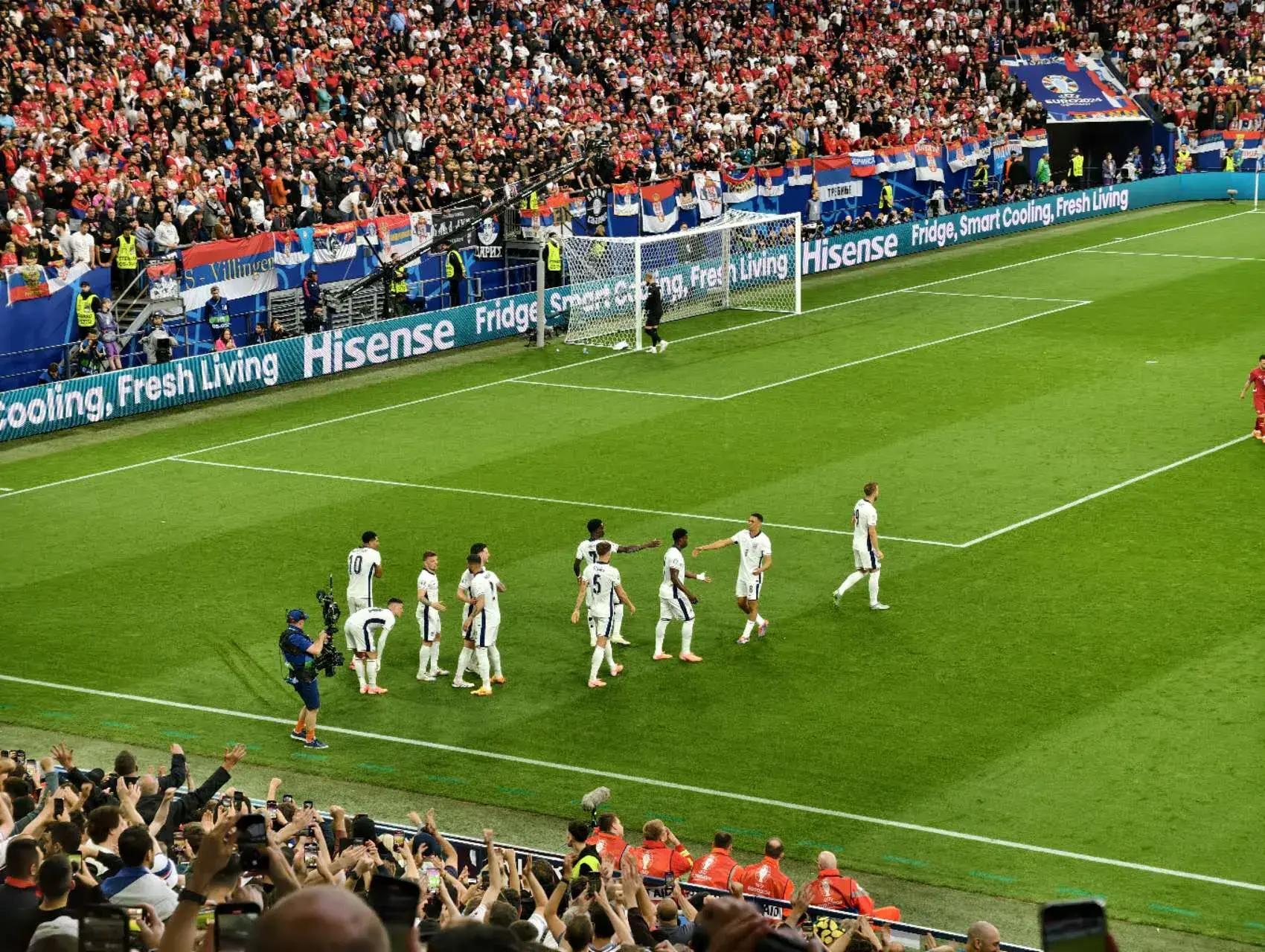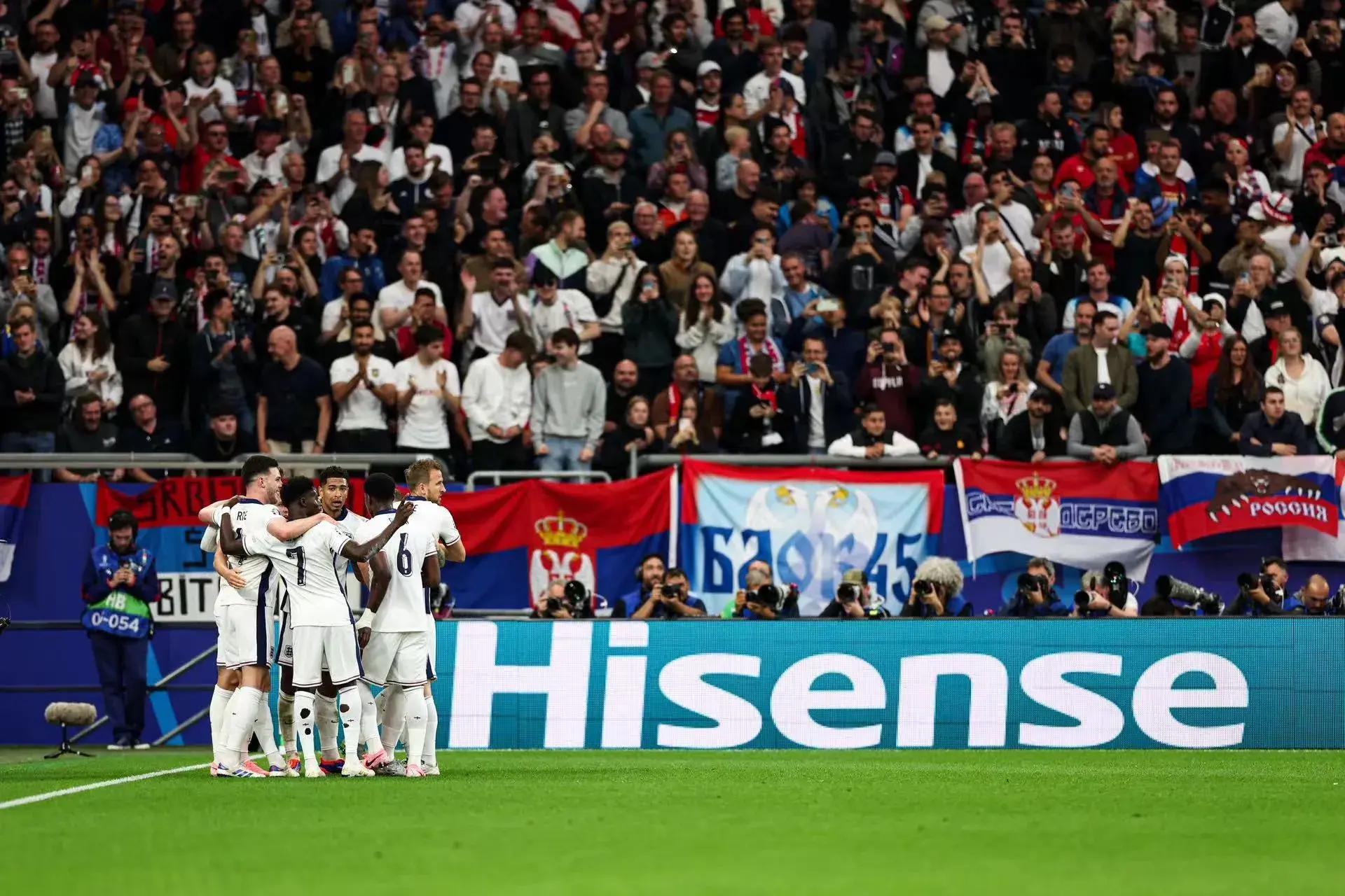 歐洲盃小組賽C組,英格蘭對陣塞爾維亞,此役上半場貝林厄姆首開紀錄,之後的比賽,阿諾德失誤險些送大禮,凱恩頭槌中楣,最終,英格蘭有驚無險,1比0小勝塞爾維亞,連續4屆大賽實現開門紅。