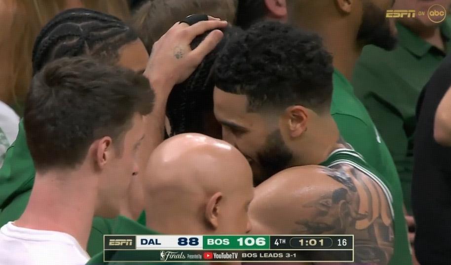 隨後的第三節和第四節比賽,獨行俠都沒有太多辦法,霍福德底角三分命中將分差拉開到25分,隨後塔圖姆漂亮腳步,單打萊夫利,晃過後者還打成2+1,持續擴大優勢。