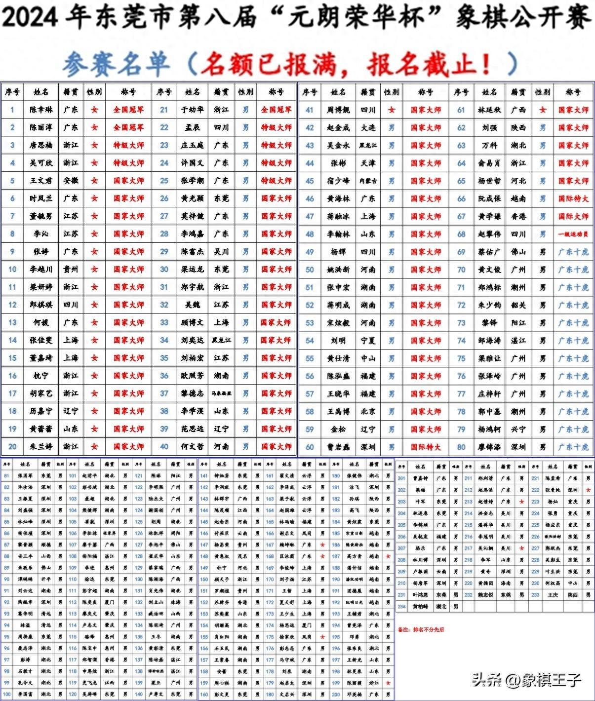 林川博、林進春、李錦雄、劉立山、林輝宇、劉泉、劉雲達、付旌臣、張勇、楊燦、崔航、李進、李旭平、陳湖海、顧天予、謝啓文、李俊峯、楊思遠、高飛、王新光、陳麗媛等省市強將、少女新星同場搏鬥。