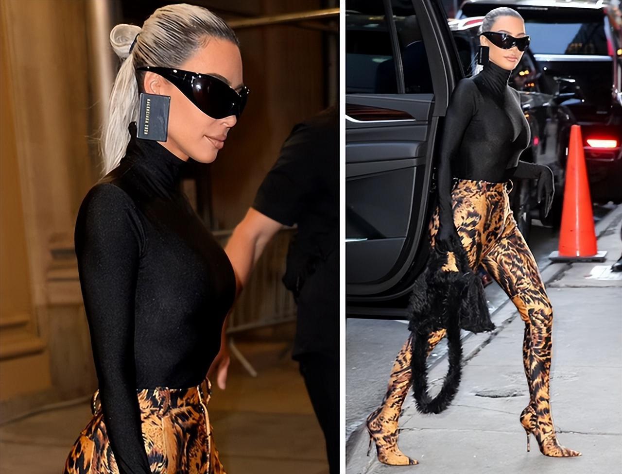 當地時間9月21日,金卡戴珊(Kim Kardashian)離開了位於紐約酒店,前往Good Morning America錄製現場,從酒店出來的金卡戴珊,打扮得頗爲浮誇,貼身黑長袖搭配豹紋緊身褲,非常搶眼球,金卡戴珊戴着墨鏡和黑耳環,氣場十足。