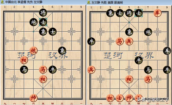 是局,左文靜先手飛相對起馬局,差點沒贏,雙方一路僵持,至末局,紅車雙馬雙兵仕相全對黑車馬炮3卒士象全。