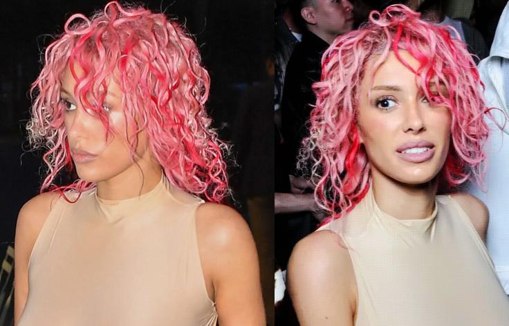 只見,比安卡依舊是緊身連體衣的造型,非常“辣眼睛”,而且這一次,她還有一個變化,那就是把頭髮染成了粉紅色,特別惹眼,走在人羣中絕對是不二焦點,看膩了她的好身材,這次被比安卡的髮型給吸引住了。
