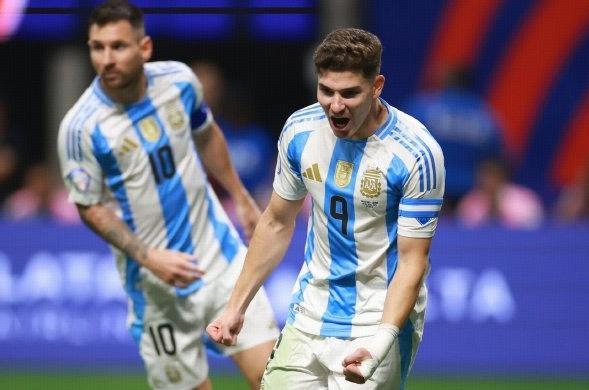 易邊再戰,比賽開始後不久,阿根廷就打破僵局了,第48分鐘,來自梅西的直塞球策動,阿爾瓦雷斯補射破門,打進本屆美洲盃首球,值得一提的是,阿爾瓦雷斯上次爲潘帕斯雄鷹破門,還是2022年12月13日世界盃半決賽,此前,他已經遭遇國家隊11場球荒達,還好此役他終於建功,爲阿根廷打開勝利之門。