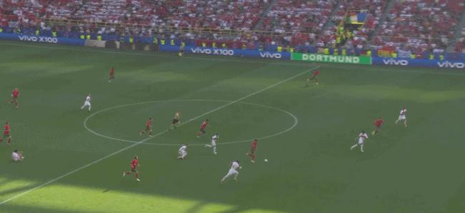上半場第26分鐘,葡萄牙打破僵局,來自門德斯邊路下底橫傳,C羅跑過了沒有搶到,還好隊友B席爾瓦抓住機會,推射入網,場上比分1比0。