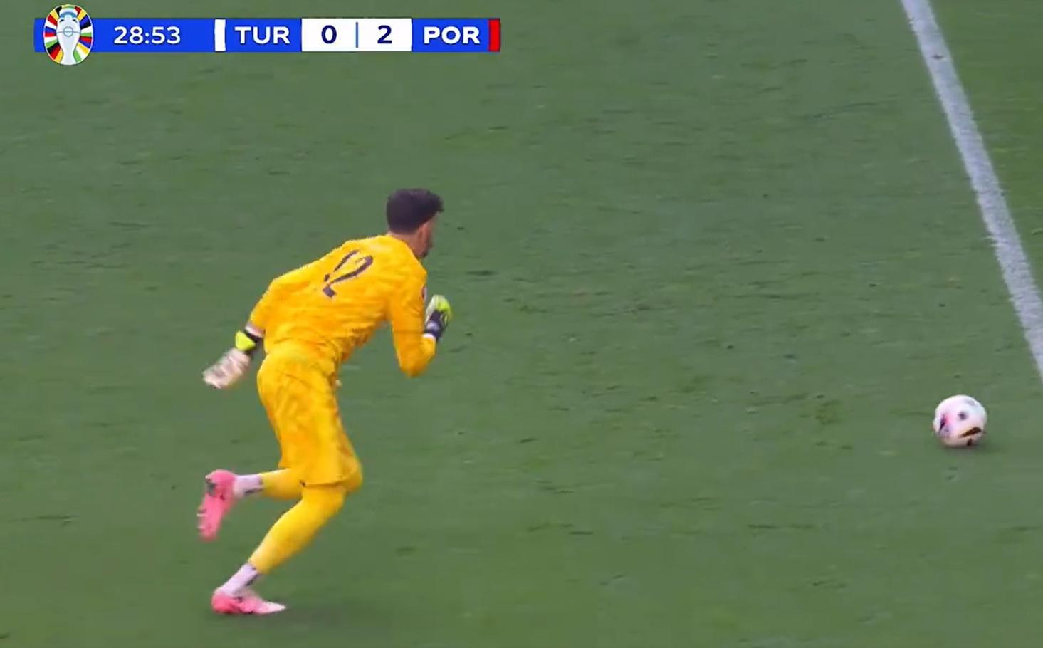 僅僅2分鐘之後,葡萄牙又擴大了比分,這一次,還是烏龍球,而且是土耳其的低級失誤,後衛草率回傳門將釀成大錯,皮球滾過門線之後被解圍出來,主裁判果斷示意進球有效,比分改寫爲2比0,葡萄牙隊笑納大禮,太意外了。