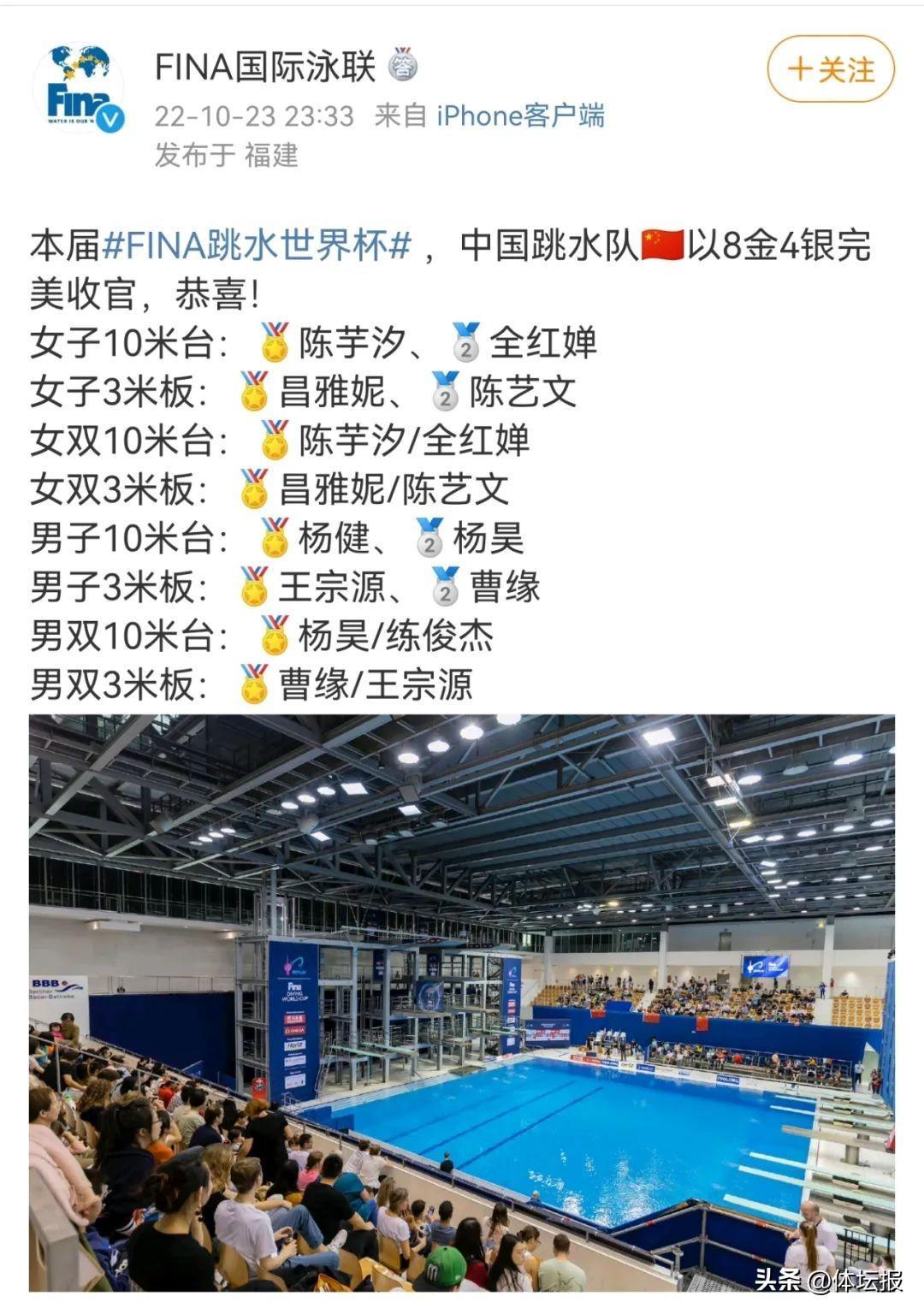 當地時間10月23日,在德國柏林舉行的2022年國際泳聯跳水世界盃落下帷幕。