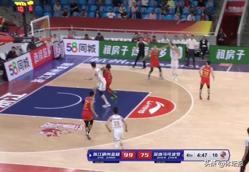 第三節,兩隊交替上分,浙江一直維持兩位數的領先。程帥澎和王仔路連中三分,浙江打出一波14:2拉開分差,三節戰罷,浙江87:63領先。可以說比賽到這裏已經基本失去的懸念。末節比賽,浙江隊提前換下幾名主力,最終以32分的優勢結束了比賽。