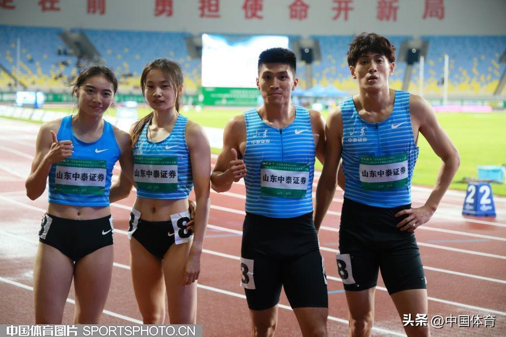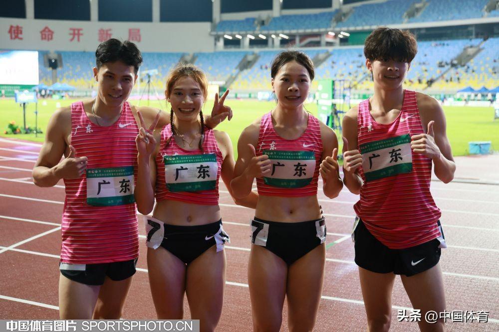 中國體育訊 6月29日晚,2024年全國田徑冠軍賽暨全國田徑大獎賽總決賽在山東日照奎山體育中心體育場進入第二個比賽日。在混合 4x400米接力決賽中,廣東隊以3分21秒62奪得冠軍,山東中泰證券隊以3分21秒78獲得亞軍,重慶隊以3分23秒28獲得季軍。(中國體育圖片 鹿麟 攝)比賽場景比賽場景廣東隊山東中泰證券隊混合4x400米接力頒獎儀式