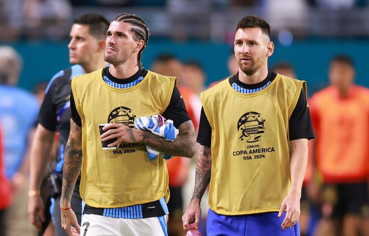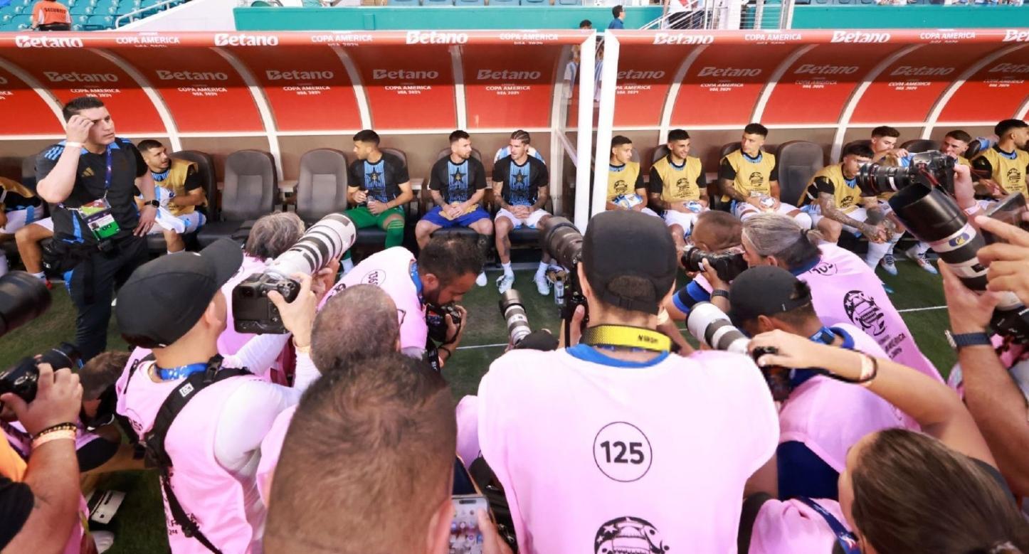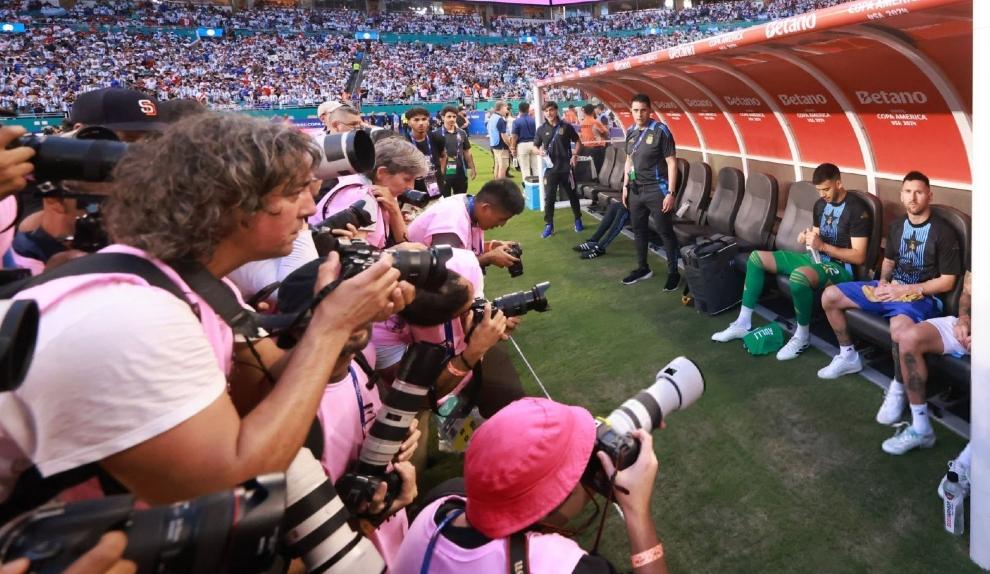 雖然這場比賽,梅西坐在替補席,但他的鏡頭絲毫不給隊友們少,而且現場記者的“長槍短炮”也都通通對準了他,可以說是懟臉拍了,絕對是美洲盃的罕見名場面,可見阿根廷球王的影響力,他坐在哪裏,哪裏就是焦點!