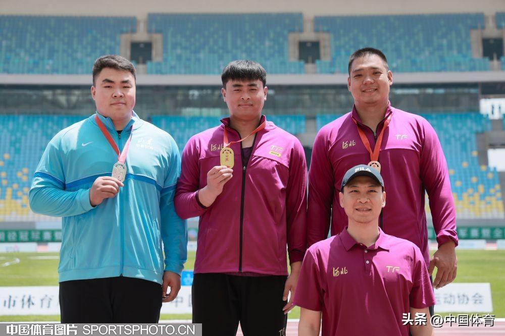 男子鉛球決賽中,河北隊張浩辰以19米97奪得冠軍,山東隊邢家梁以19米84獲得亞軍,另一位河北選手田子重以19米50獲得季軍。(中國體育圖片 鹿麟 攝)