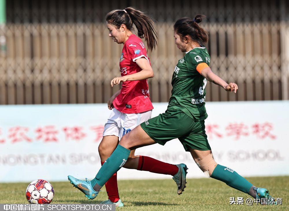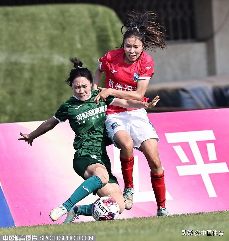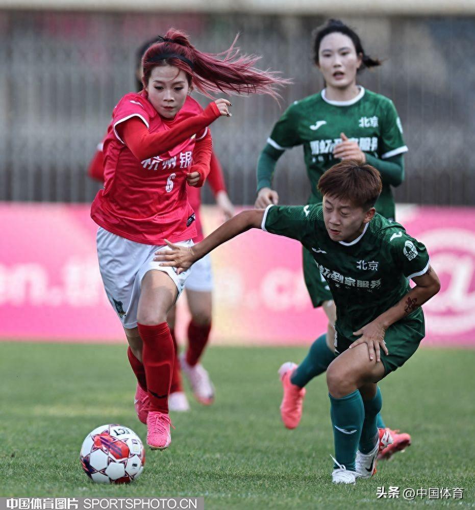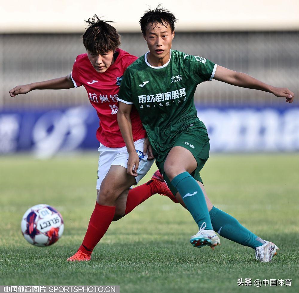 中國體育訊 6月30日,2024年中國足球協會女子超級聯賽第12輪的一場比賽,在先農壇體育場舉行。北京雨虹修繕隊(綠衣)以6比0大勝杭州銀行隊。圖爲比賽場景。(中國體育圖片 王憲民 攝)
