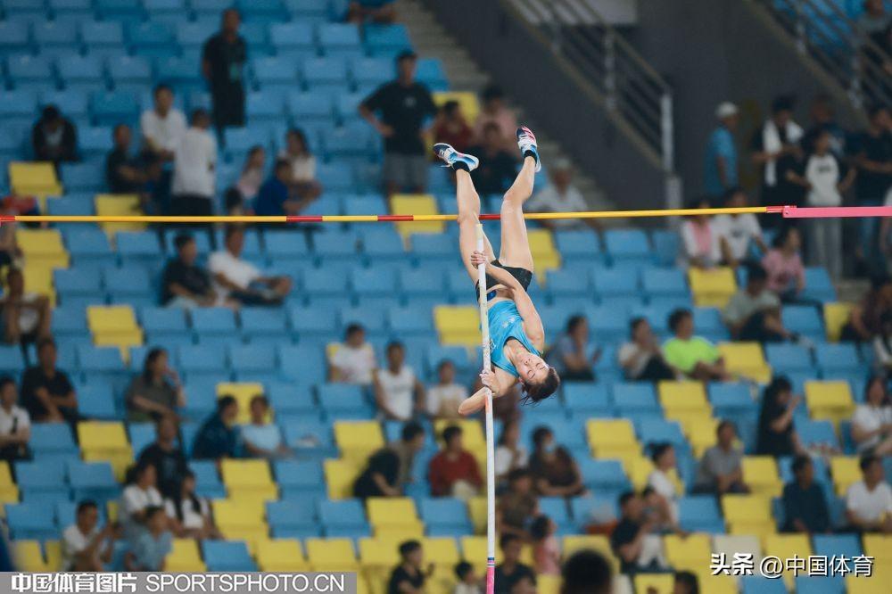 女子撐杆跳高決賽中,浙江隊陳巧鈴以4米40的成績奪得冠軍,安徽隊牛春格跳出同樣的高度,因試跳次數多於陳巧鈴,最終獲得亞軍。另兩位浙江選手徐惠琴和戴雨格以4米30並列季軍。(中國體育圖片 鹿麟 攝)