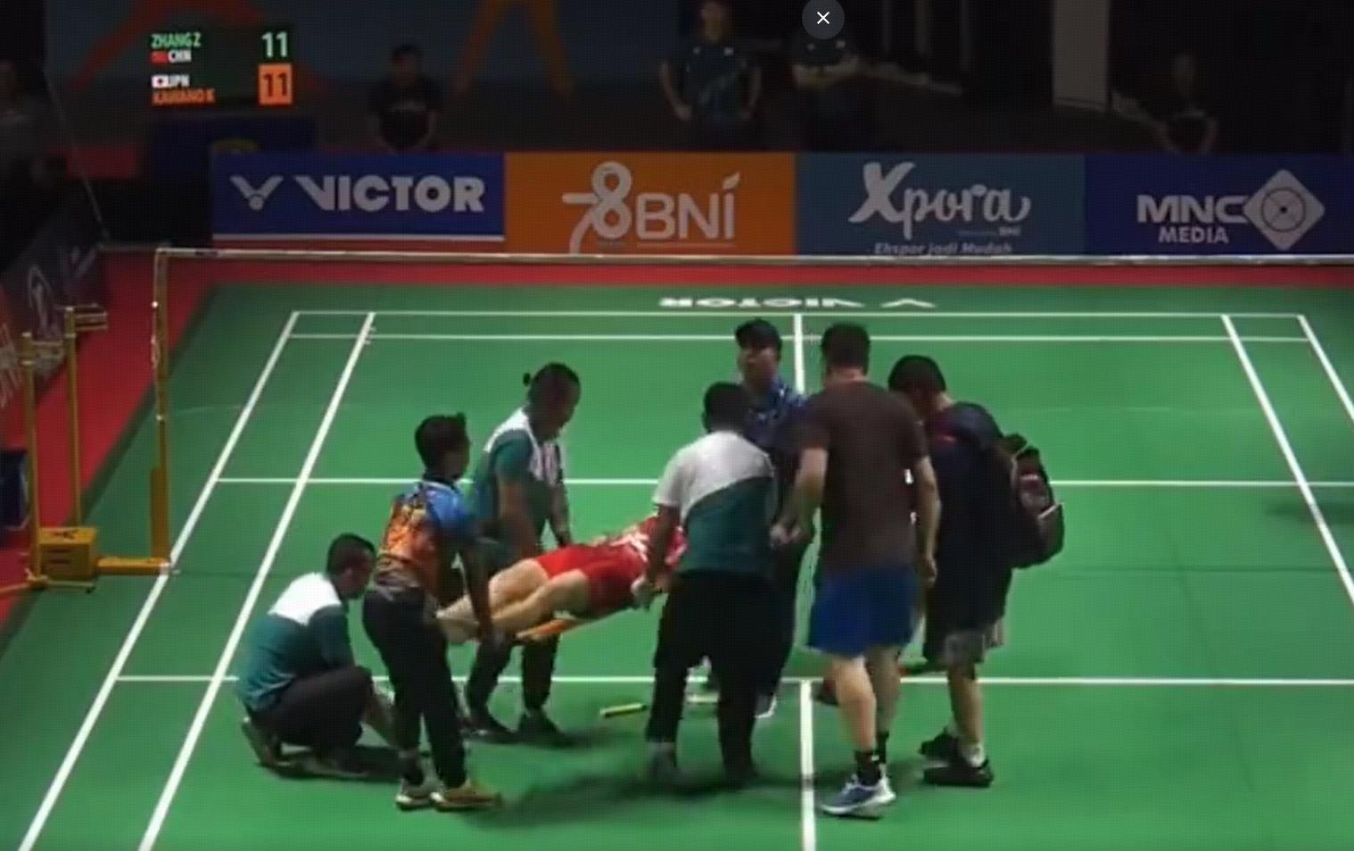而從現場畫面來看,進入場內的是印尼組委會配備的緊急救治小隊,但從他們拙劣、業餘的搶救手段來看,其一併沒有看到AED和人工心肺復甦,其二沒有統一的搶救方案,感覺是各忙各的,非常慌張,而在張志傑倒地後1分鐘,擔架入場了,隨即國羽小將便強行被抬上了擔架,然後緊急送往了醫院。