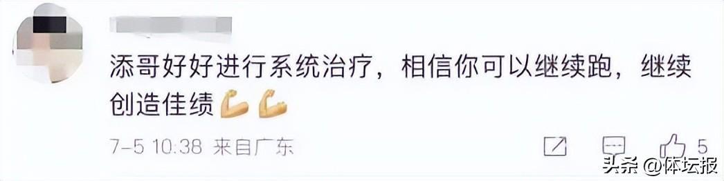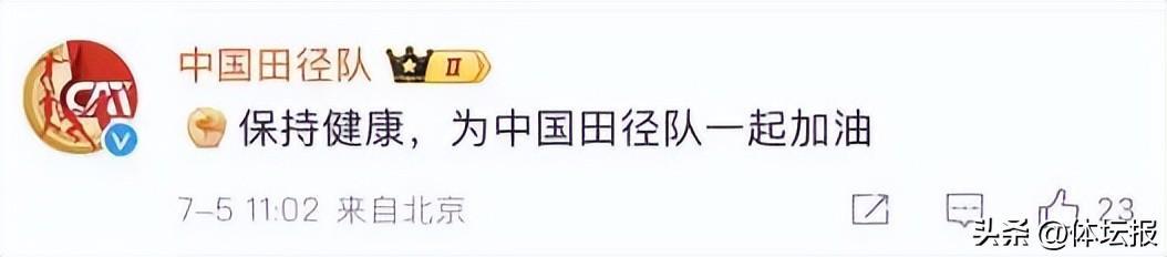 中國田徑隊官方微博也留言稱“保持健康,爲中國田徑隊一起加油”。