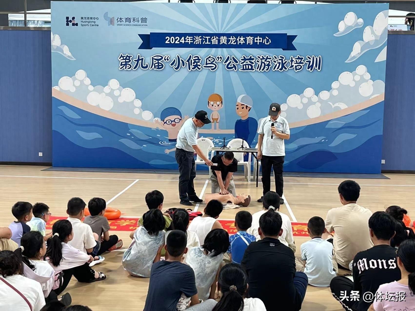 仲夏之際,孩子們的暑期開始了,浙江省黃龍體育中心一年一度的小候鳥公益游泳培訓也如約而至。7月5日,2024浙江省黃龍體育中心第九屆小候鳥公益游泳培訓課在杭州包玉剛游泳場內進行。