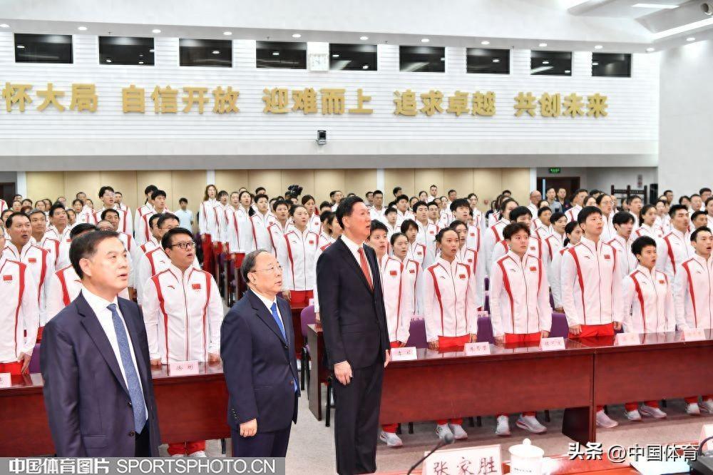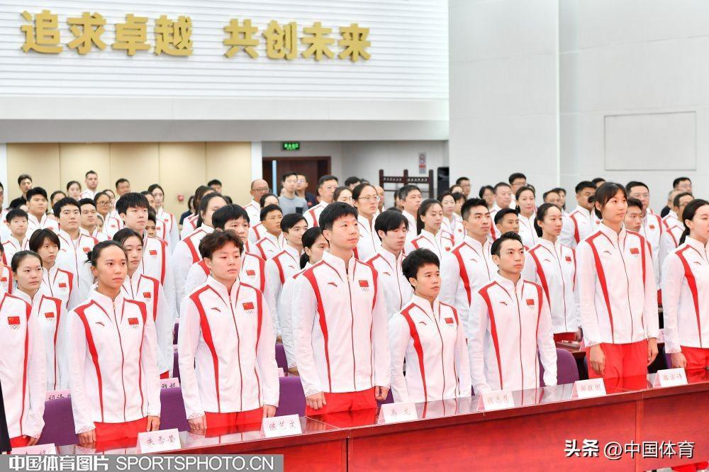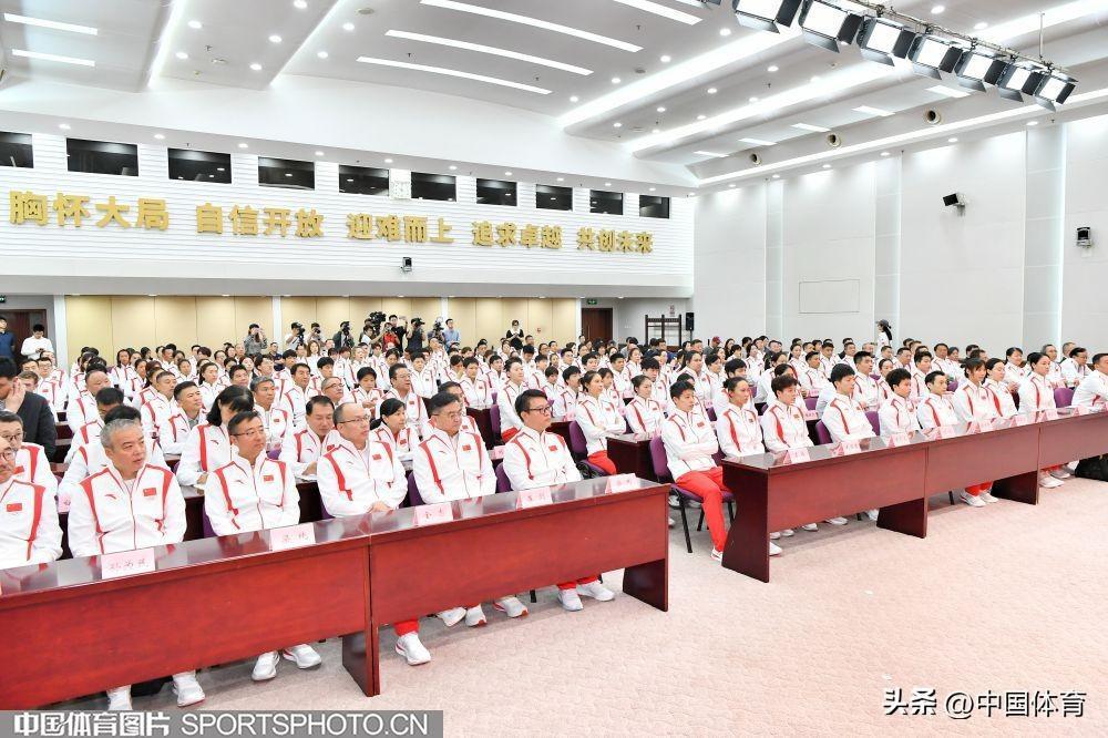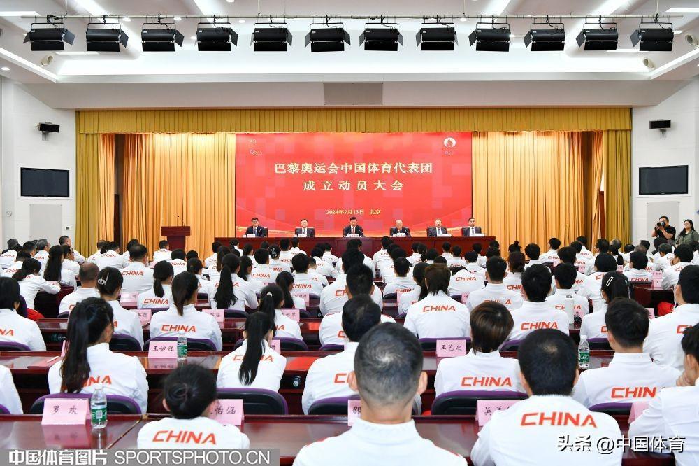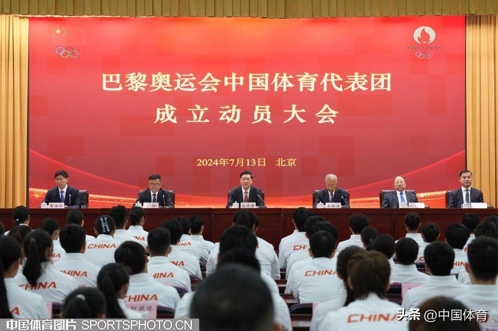 中國體育訊 7月13日上午,巴黎奧運會中國體育代表團成立大會在北京舉行。代表團共由716人組成,其中運動員405人(男運動員136人、女運動員269人)。代表團運動員平均年齡25歲,其中有42位奧運冠軍,223人爲首次參加奧運會。 (中國體育圖片 倪敏哲 攝)