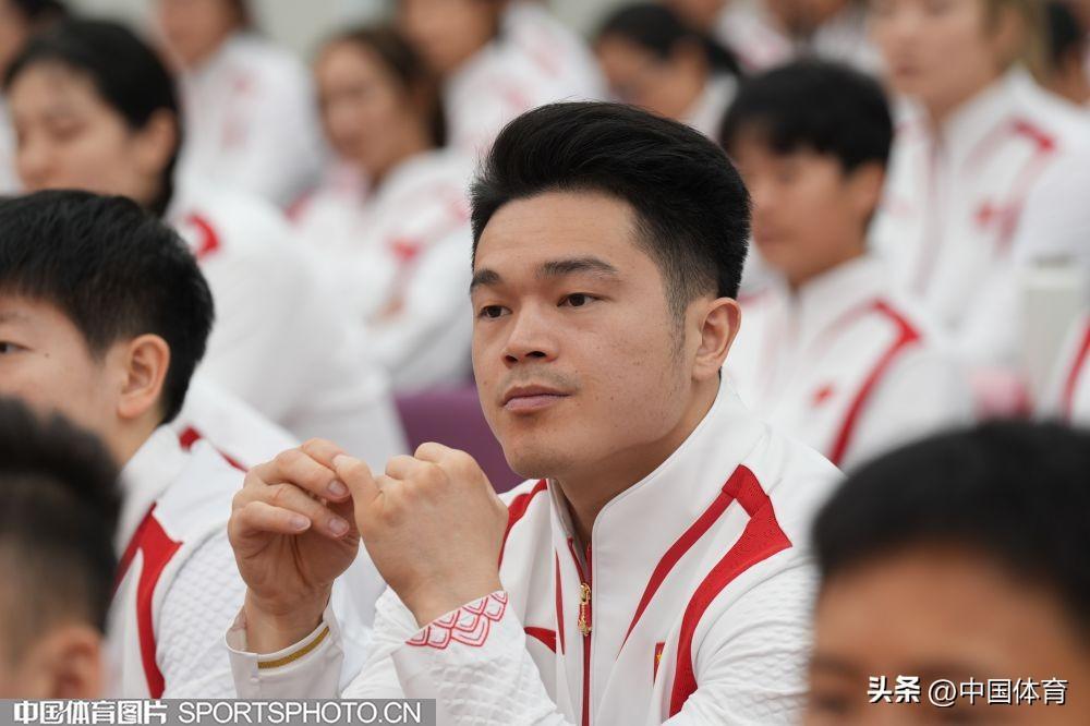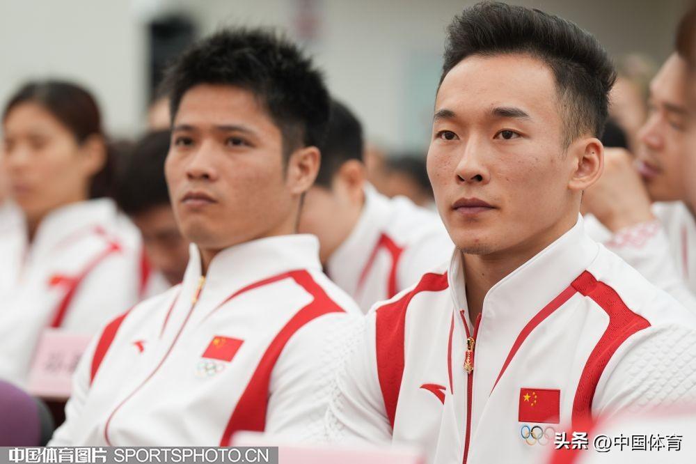 (左起)舉重運動員李發彬、體操運動員肖若騰