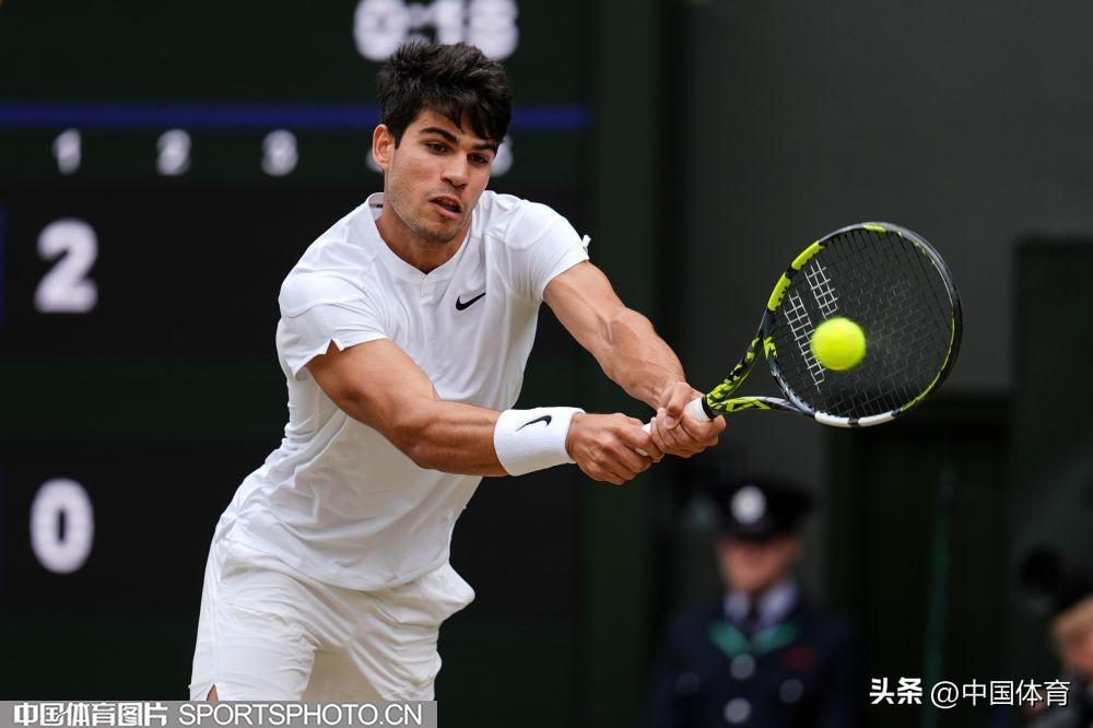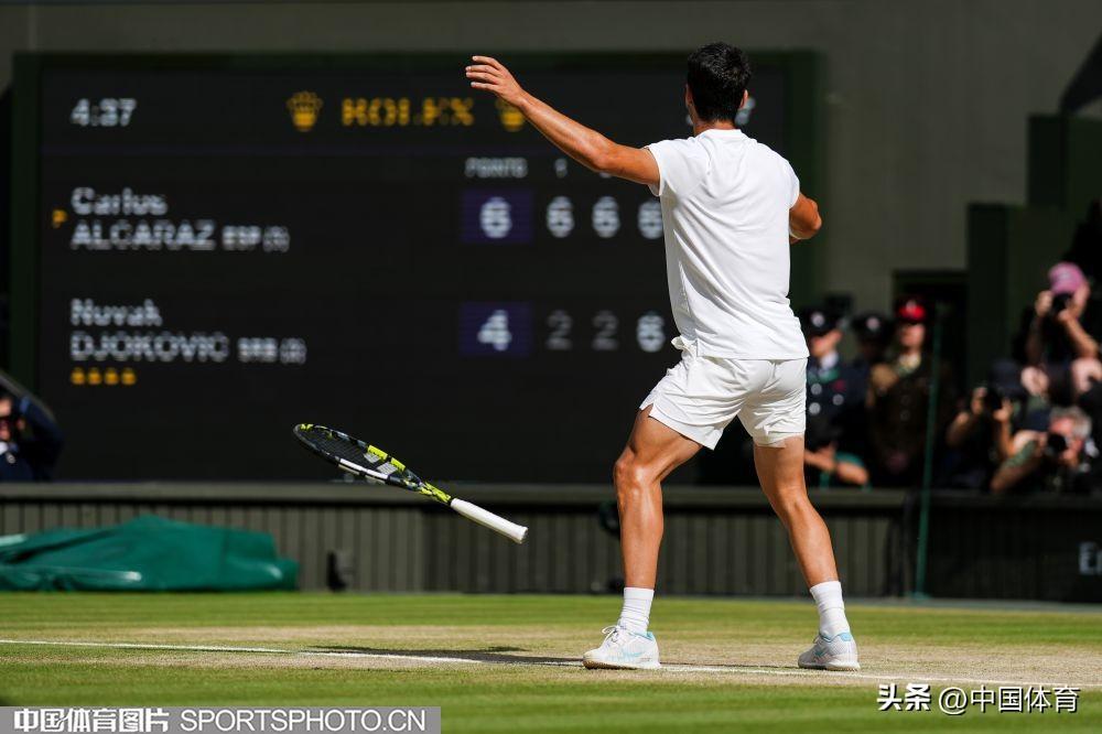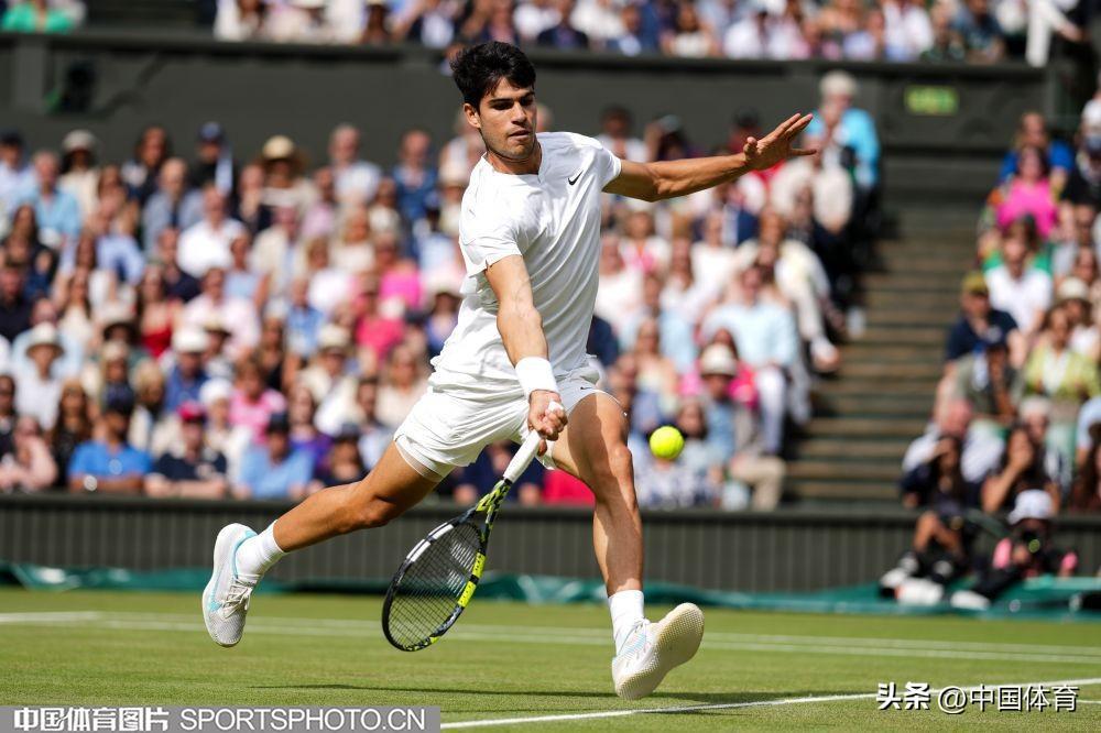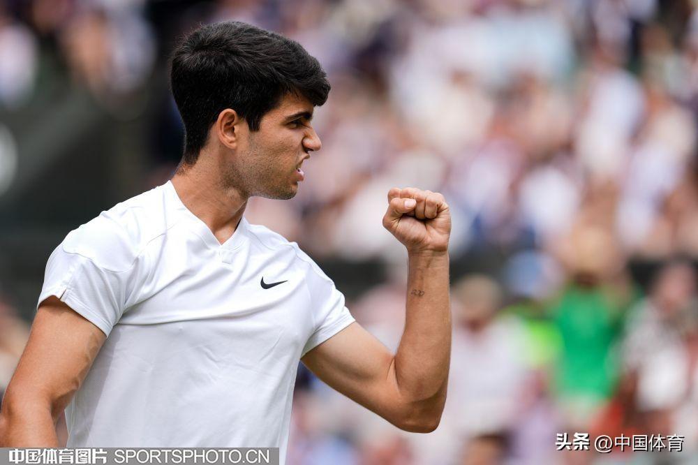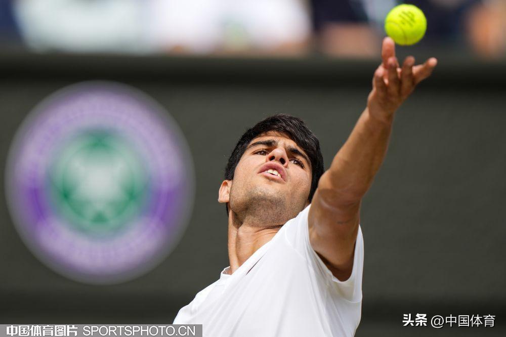 中國體育訊 當地時間7月14日,2024溫布爾登網球錦標賽男子單打決賽,在英國倫敦舉行。西班牙選手阿爾卡拉斯以3比0(6比2、6比2、7比6)戰勝塞爾維亞選手德約科維奇,收穫溫網第二個冠軍,這也是他個人生涯第四座大滿貫冠軍。(中國體育圖片 唐詩 攝)