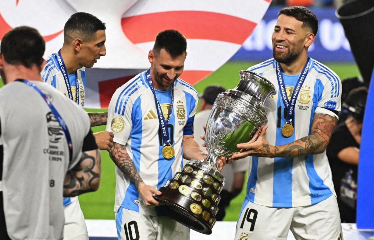 值得一提的是,在賽後的捧杯時刻,梅西招呼兩個老夥計共同舉起榮耀,他們分別是迪馬利亞和奧塔門迪,賽前阿根廷隊還給“天使”舉行了提前告別儀式,而奧塔門迪估計也是最後一屆美洲盃了,梅西主動邀請兩位好兄弟一起捧杯的細節,盡顯大將之風,同時又無比令人暖心。